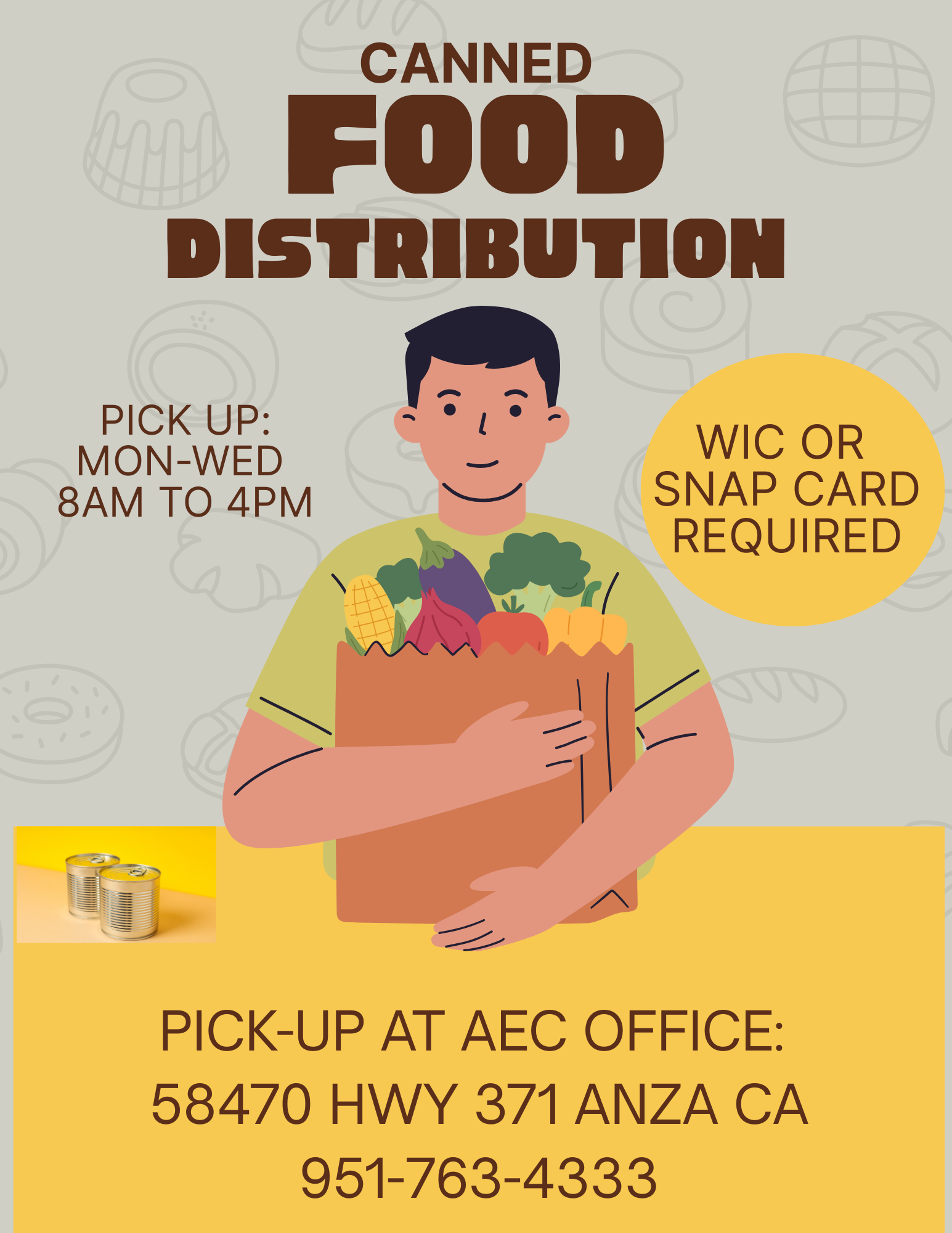 Come to the AEC office this week, Monday, Tuesday and Wednesday, between 8:00 am and 4:00 pm to pick up canned foods and more!