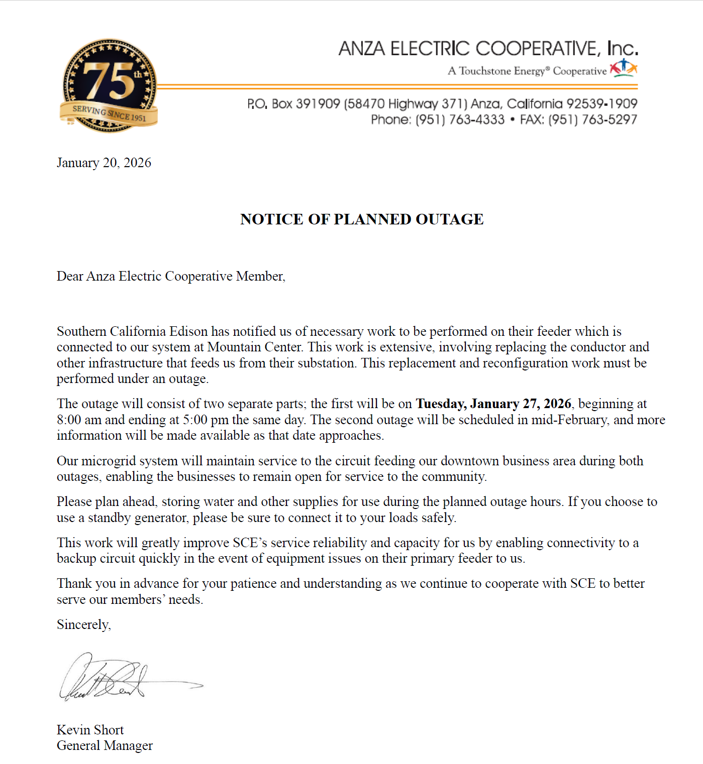 Electric Outage 1/27/2025